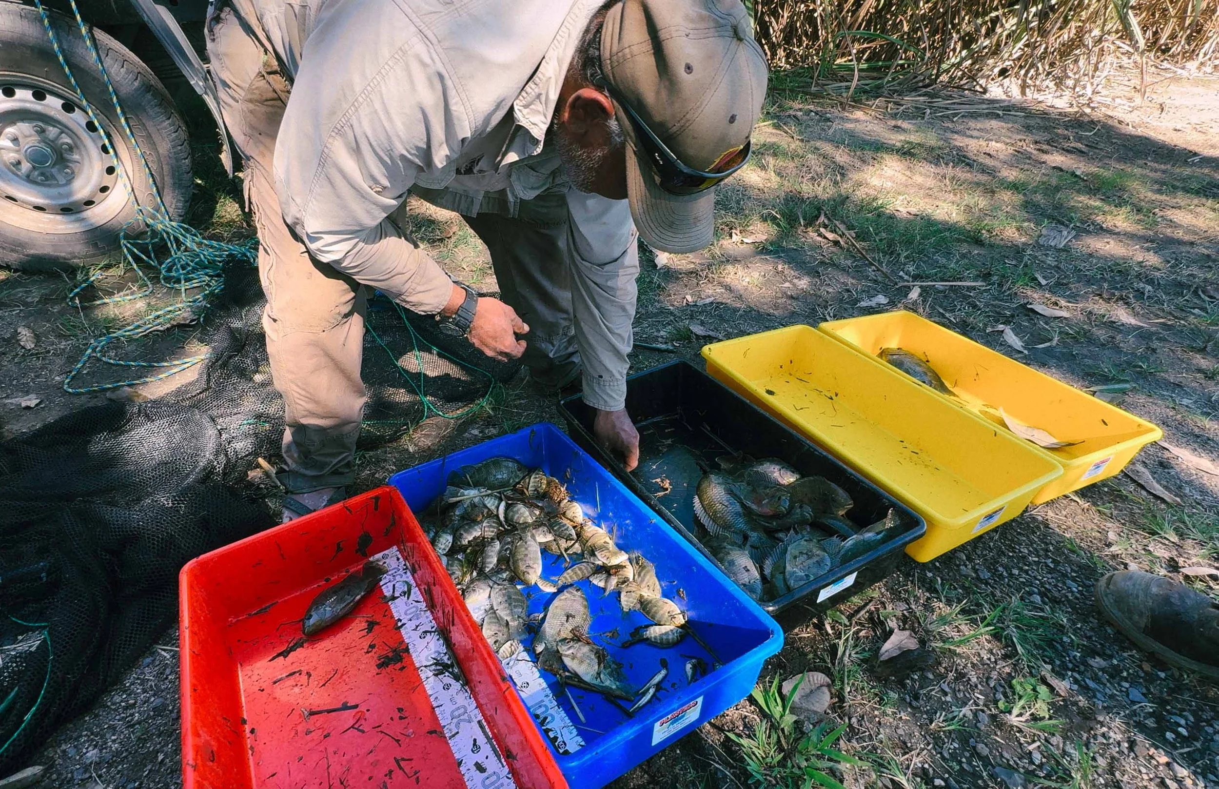 • Physically trapping fish during periods of lower water levels.Control of Wild Pig Populations: Our efforts also focus on targeting reproductive female pigs to disrupt breeding cycles and reduce local populations.