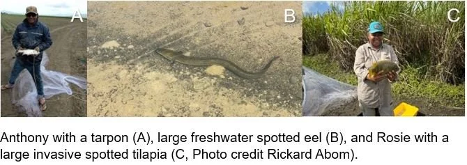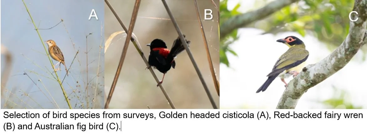 Prior to the onset of the wet season, aquatic fauna surveys were conducted across the three drain sites to quantify native and invasive fish assemblages and provide a pre‑revegetation benchmark. Invasive species, including spotted tilapia, platy and mosquito fish, were detected at sites 1 and 2, providing an important baseline for assessing whether habitat improvements and native vegetation influence pest fish prevalence over the life of the project and beyond.