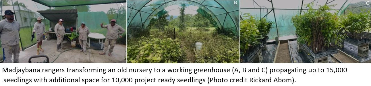 Madjaybana rangers have transformed an old nursery to a working greenhouse propagating up to 15,000 seedlings with additional space for 10,000 project ready seedlings.