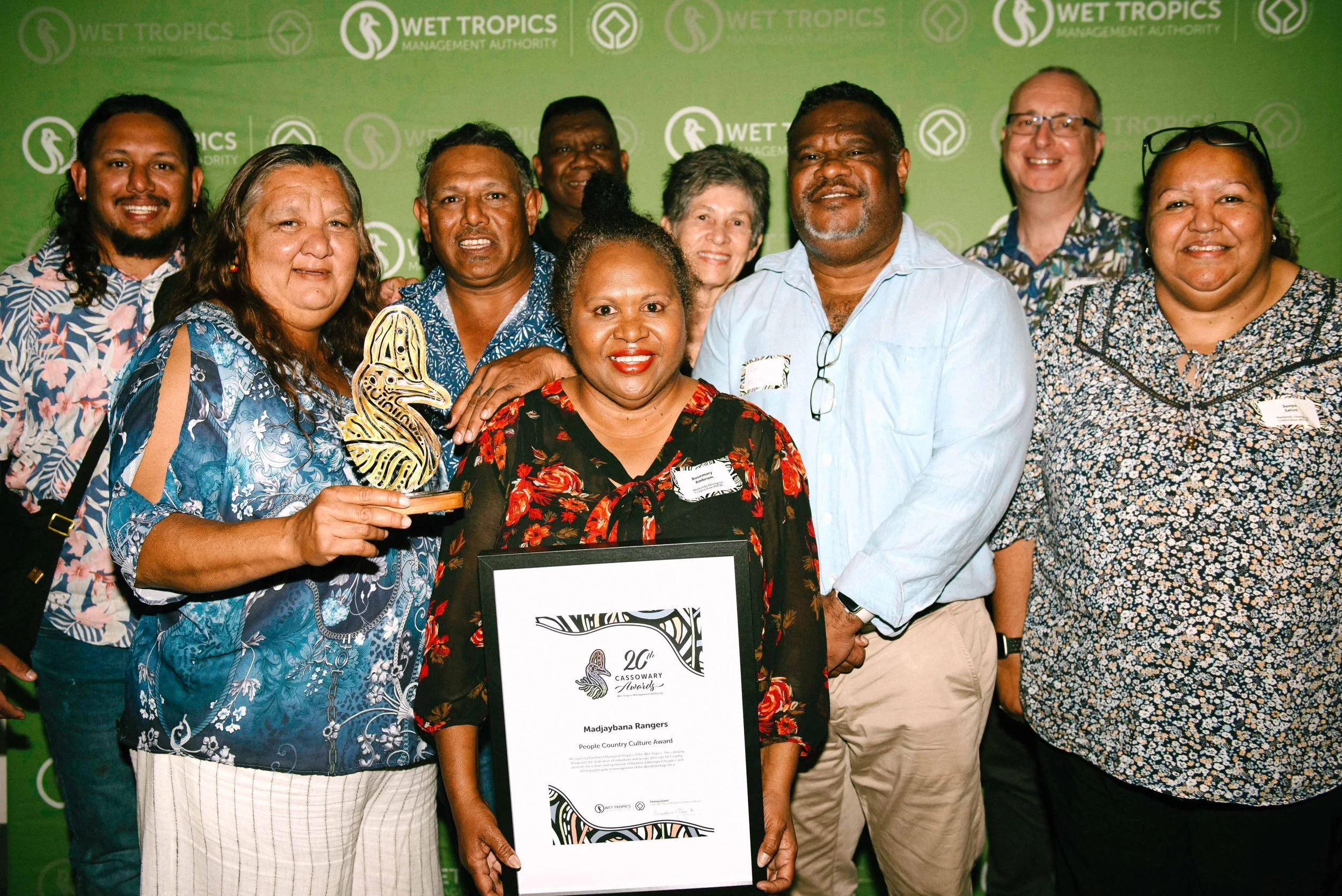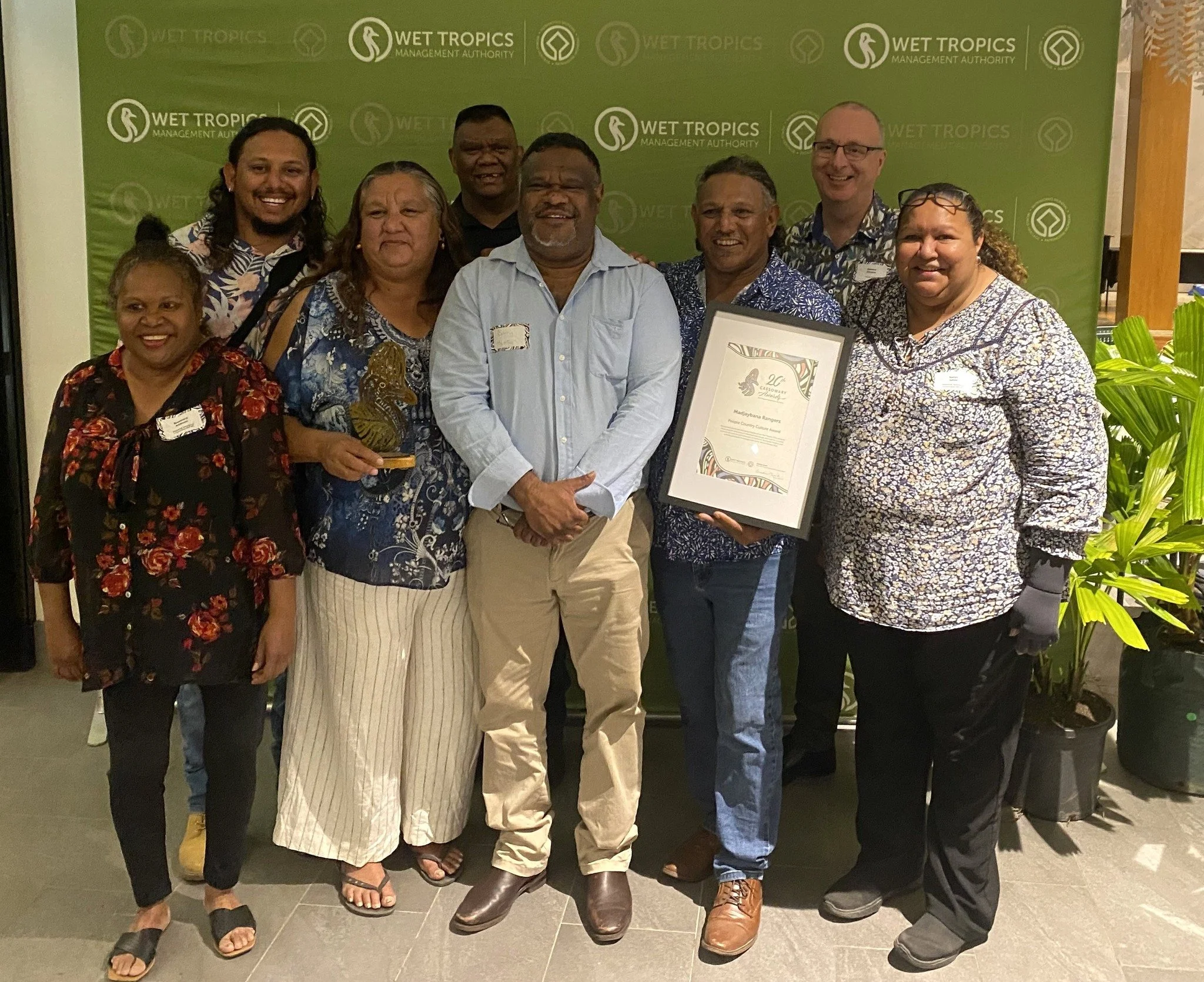 Madjandji Aboriginal Corporation’s, Madjaybana Ranger Team has been recognised for their outstanding contributions to cultural and environmental stewardship, receiving the People Country Culture Award at the 20th Cassowary Awards hosted by the Wet Tropics Management Authority on 6 September 2024.