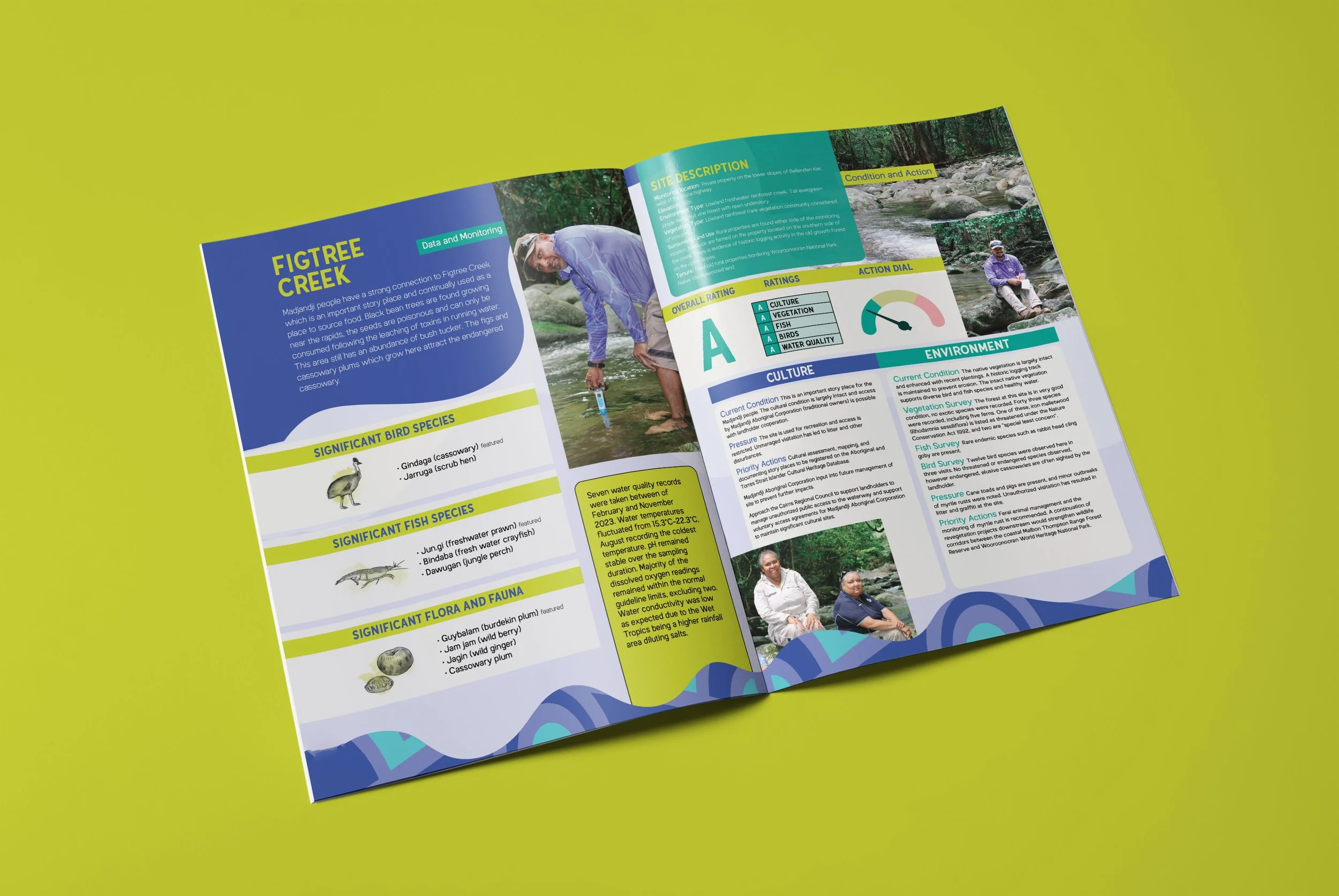 The Madjandji Healing Waters Project, delivered under the Reef Trust Partnership's Traditional Owner Healthy Water Grant Program, was established to protect and preserve Madjandji waters and places for future generations. Through the project, Madjaybana rangers and partners implemented a monitoring program focused on culturally significant Madjandji watercourses, recording both ecosystem health and cultural connections. The collected data and findings were compiled and shared in the Madjandji Healthy Water Report Card.